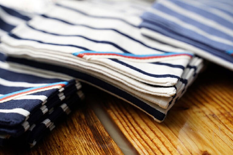 Heavy jersey – een dikkere kwaliteit, zoals deze al werd gebruikt in de tijd dat de Bretonse streep aan de Franse marine voorbehouden was.